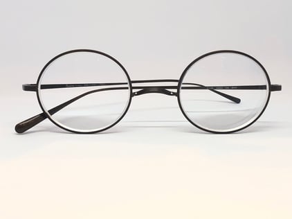 使用メガネの遠見視力は0.4程度で右S-6.50、左S-9.00と度数差が大きいのも特徴。