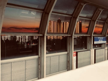 写真は帰り道モノレールの駅から マジックアワーのマンション群